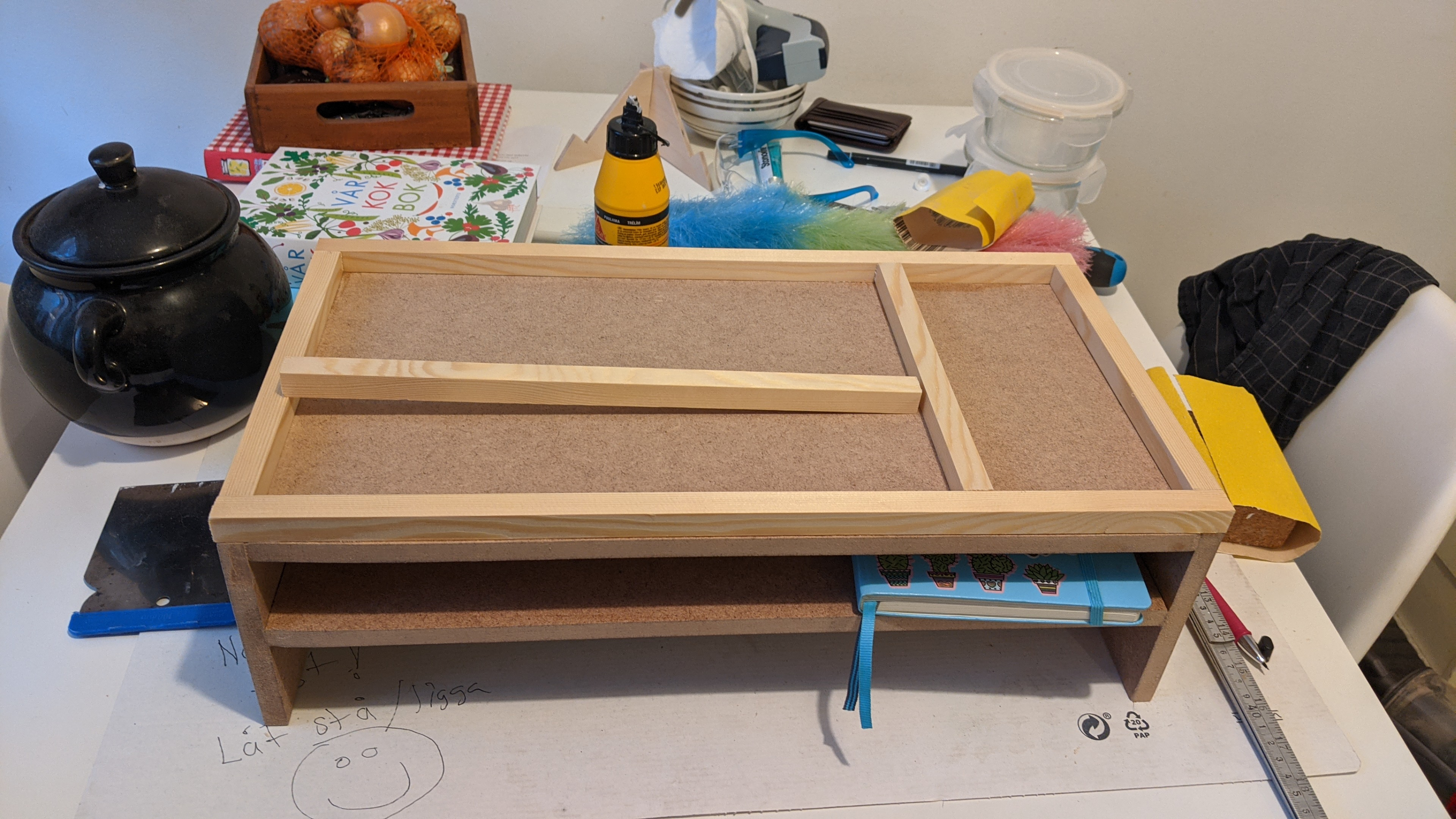 We needed a desk organizer... to organize things on the desk :-) You can get something like this ready made of course but we make things because its more fun ...